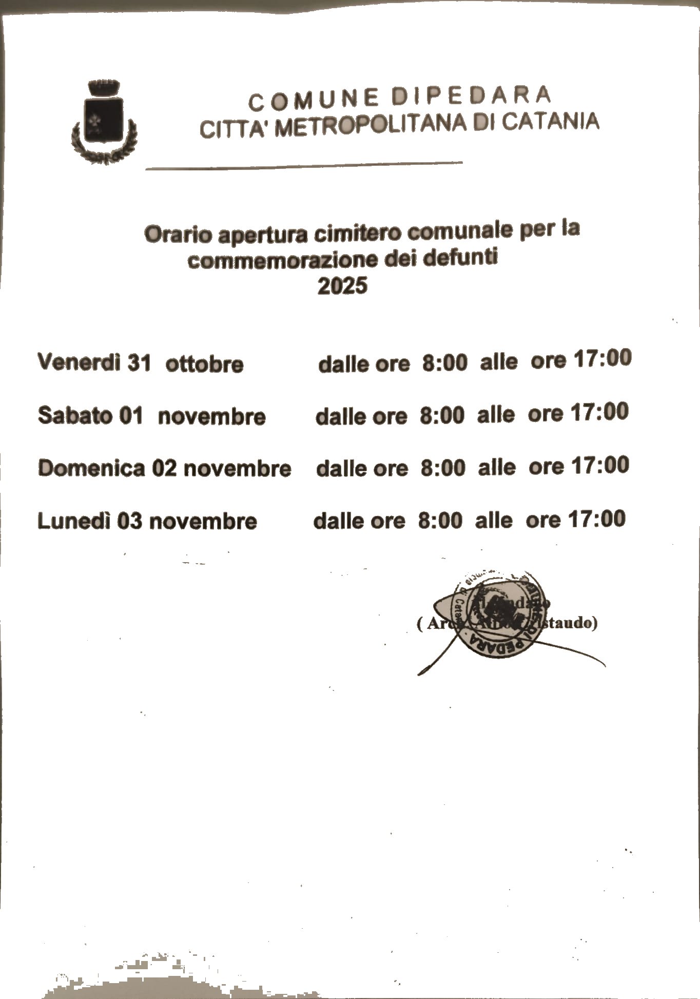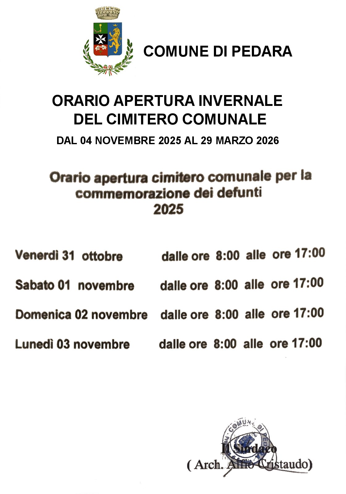 Orario Apertura cimitero comunale per Commemorazione dei defunti 2025