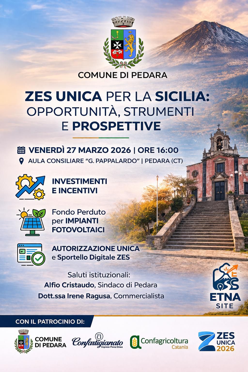 Venerdì 27 Marzo ore 16:00 - Aula Consiliare Comune di Pedara